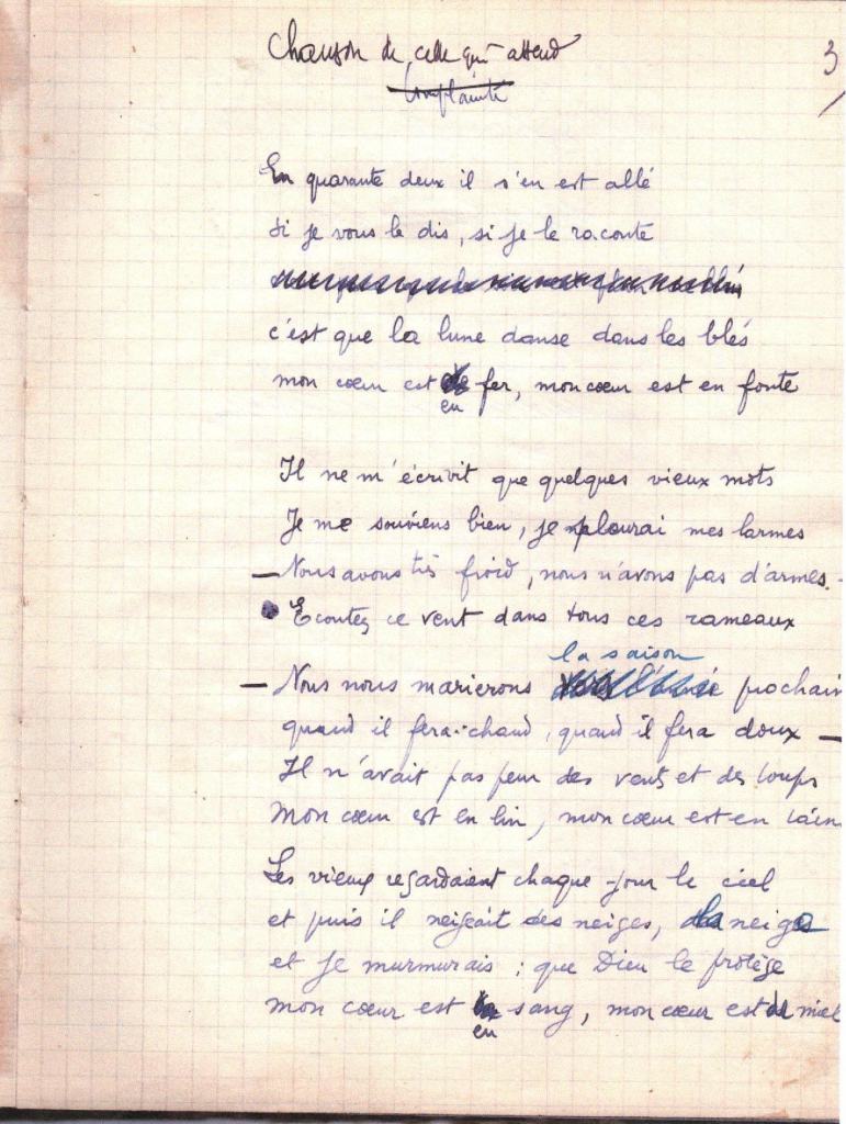 Pierre Gamarra a écrit ce poème en 1942. Le manuscrit, lequel, parmi nombre de corrections, indique que l’auteur avait intitulé le poème simplement « Complainte », se trouve dans un cahier de poèmes datant de 1940 à 1942. Le poème est paru en 1951 dans un petit recueil intitulé Chanson de la citadelle d’Arras édité Au Colporteur et imprimé à Saint-Girons (Ariège).